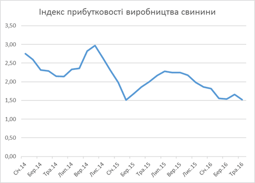 Кормовий індекс, складений з цін на основні фуражні зернові і олійні шроти, підвищився в травні на 4%, тому не дивно, що прибутковість виробництва свинини істотно знизилася. Згідно з розрахунками робочої групи FAO/EBRD, індекс прибутковості, який показує відношення ціни свинини до ціни кормів, впав протягом травня більш ніж на 8 відсотків і опинився на найнижчому рівні за останні три роки.