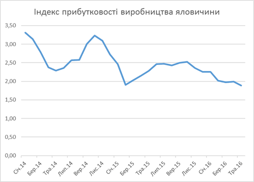 Прибутковість виробництва яловичини знизилася в травні більше ніж на 5 відсотків і також стала найнижчою за останні три роки. Це правдиво відображує ситуацію з балансом попиту і пропозиції яка склалася на ринку.