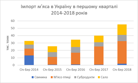 В наших прогнозах на 2018 рік імпорт м’яса, субпродуктів та сала в Україну в цілому мав би залишитись на рівні минулого року. Ми очікували зростання імпорту свинини й сала, яке буде компенсовано зниженням ввозу м’яса птиці…