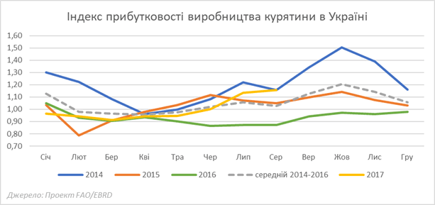 Ну і третій факт – прибутковість виробництва курятини зараз не перевищує середню за останні роки (до речі, не дуже благополучні в цьому плані).