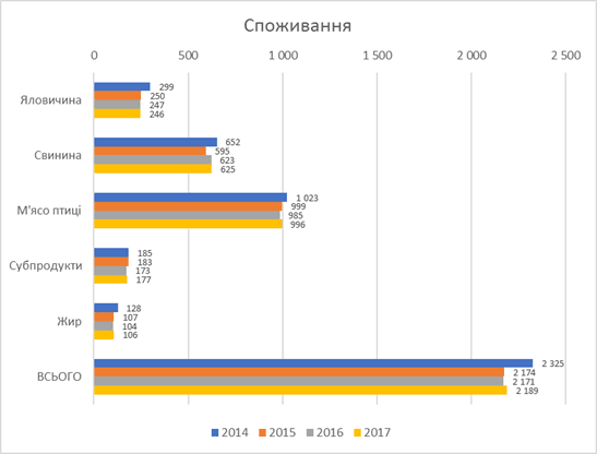 Прогнози балансу попиту й пропозиції м’яса в Україні в 2017 році