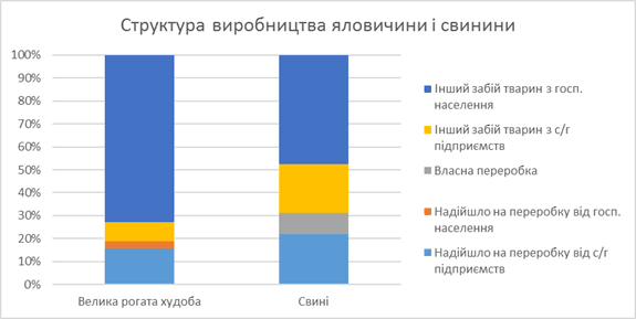 Отже якщо порівняти дані по реалізації на забій і надходженню на переробні підприємства, то виходить наступна структура виробництва м’яса: